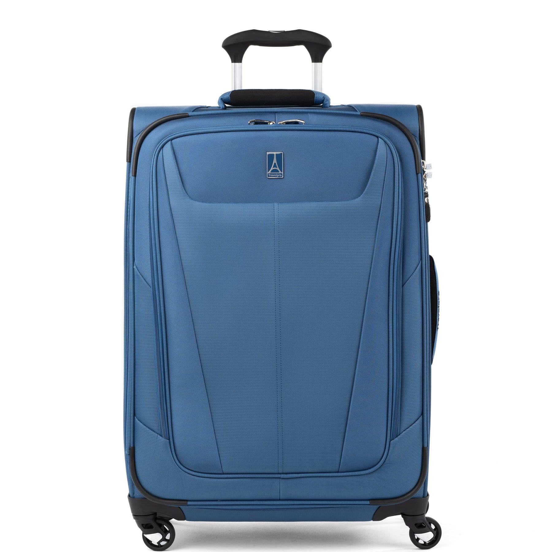 TravelPro Maxlite® 5 Medium Check-In Expandable Spinner offers a lightweight yet ultra-durable design, ideal for medium to extended trips. Streamlined series is engineered with feather-light construction to help you stay well under airline weight restrictions. Its soft-sided construction includes an ECOFAB™ lining crafted from 100% post-consumer recycled plastic bottles, enhanced with H2O guard treatment for added moisture resistance. This spinner combines sustainable materials with practical features, ensuring reliable performance throughout your travels. Shop TravelPro Luggage Palo Alto, CA at Going In Style Luggage Store. SKU: 401176506 Slate Green SKU: 401176547 Ensign Blue SKU: 401176501 Black SKU: 401176530 Orchid Pink SKU: 401176502 Midnight Blue