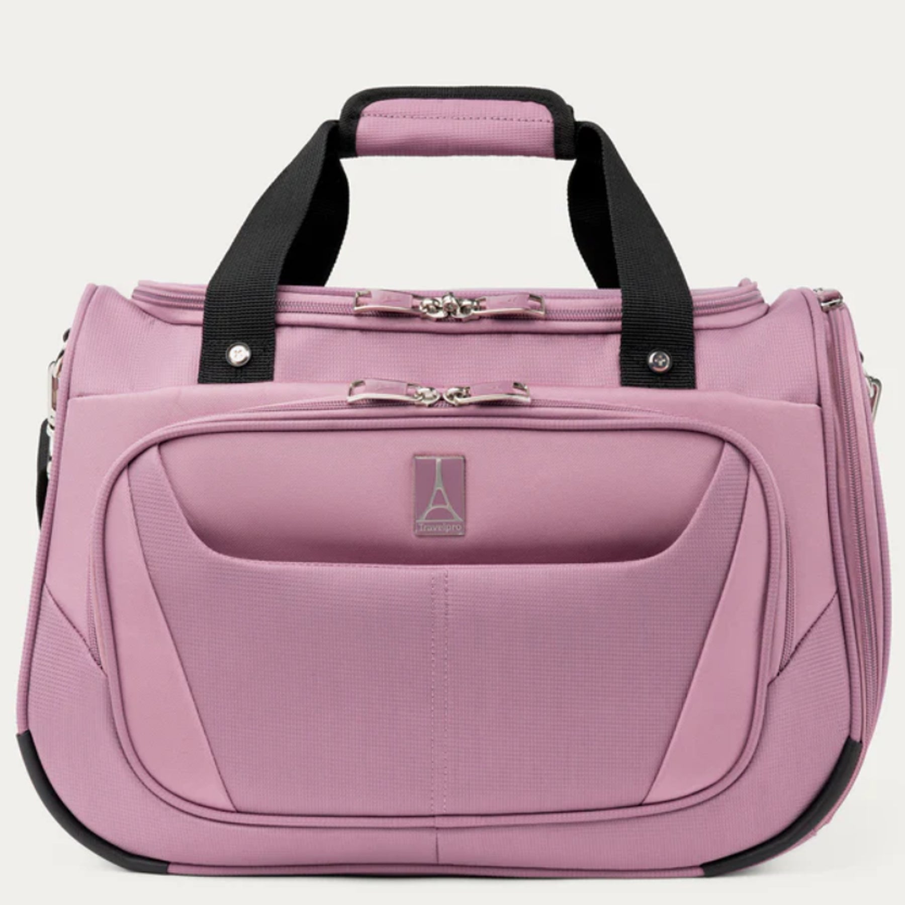 Shop Travelpro luggage duffels and totes near you at Going In Style Luggage Store 608 & 609 Stanford Shopping Center Palo Alto, CA - Meet the Travelpro Maxlite 5 Soft Tote, the durable and lightweight travel companion designed to simplify your journey. Looks like a mini duffel bag for travel. Duffel bag tote compact bag is ideal for under-seat storage or as a small all-in-one piece for short trips. Organized travel is a breeze with a quick-access front flap, built-in accessory pockets, and a roomy main compartment. Made with sustainability in mind, the bag features an ECOFAB™ interior lining crafted from 100% post-consumer recycled plastic bottles and treated with H2O guard for moisture resistance. Travel Tote bag's exterior is incredibly strong and has excellent water and stain resistance. Use the convenient rear strap to securely stack it on top of your rolling suitcase. This Travelpro tote is protected by the Travelpro® Built For A Lifetime Limited Warranty.